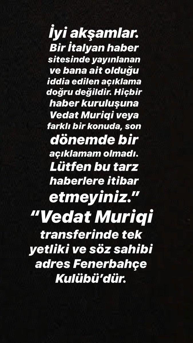 "İyi akşamlar. Bir İtalyan haber sitesinde yayınlanan ve bana ait olduğu iddia edilen açıklama doğru değildir. Hiçbir haber kuruluşuna Vedat Muriqi veya farklı bir konuda, son dönemde bir açıklamam olmadı. Lütfen bu tarz haberlere itibar etmeyiniz.