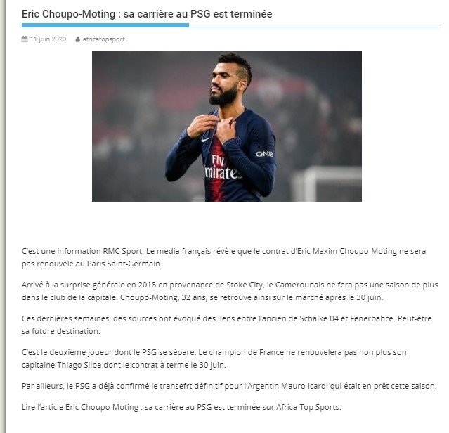 Bu bağlamda Fransız basını, konu ile ilgili yazdığı haberde Chupo Moting'in, Paris Saint Germain ile sözleşmesini yenilemeyi reddettiğini ifade ederken, oyuncu gelen teklifleri duyurdu.