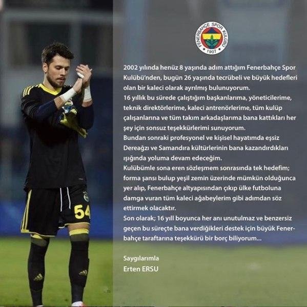 Erten Ersu takıma böyle veda etmişti: