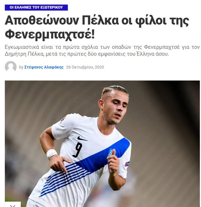 Haberin detaylarında Pelkas'ın performansının Fenerbahçeli taraftarlarca oldukça beğendiği kaydedilirken, sosyal medyada da Yunan futbolcu için olumlu yazılar yazıldığı aktarıldı.
