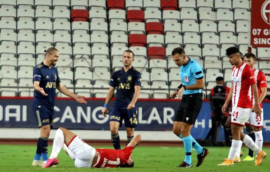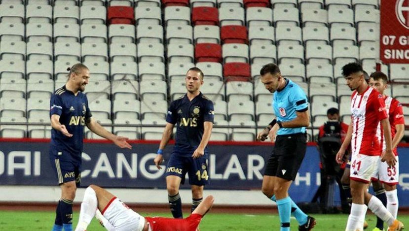 İlk yarının son dakikalarında Antalyaspor, sahada 10 kişi kaldı. Serdar Aziz'e arkadan yaptığı faul sonrası sarı gören Adis Jahovic, VAR'dan gelen uyarı sonrası kızardı! Hakem Bahattin Şimşek, VAR'ın pozisyonu izlemesi konusunda aldığı uyarıdan sonra sahaya döndü ve 33 yaşındaki futbolcunun sarısını iptal edip, direkt kırmızı kartını çıkardı. Geçtiğimiz hafta da 5-1 mağlup oldukları Başakşehir karşısında Amilton sarı görmüş, VAR'dan gelen uyarının ardından yıldız futbolcu, kırmızı kartla soyunma odasının yolunu tutmuştu. Bu arada Fenerbahçe de karşılaşmada iki penaltı bekledi. Sarı-lacivertlilerin 28. dakikada sırtı dönük pozisyonda Orgill'in eline çarpan top ile 73'te Naldo'nun topa elle müdahale ettiği yönünde tepkileri vardı.