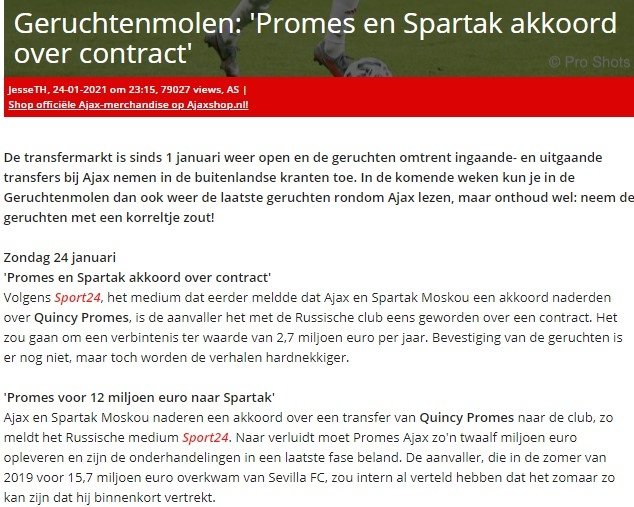 Bununla beraber Spartak Moskova'nın, Quincy Promes için Ajax'a 12 milyon euroluk bonservis ödeyeceği ve bu rakam üzerinde el sıkışıldığı ifade edildi.