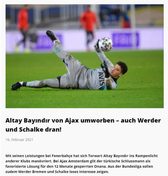 LigaBlatt'ın haberine göre; genç kaleciyi bir süredir gözlemcilerine izleten Ajax'ın sezon sonunda sarı-lacivertli kulübün kapısını çalacağı öne sürüldü.
