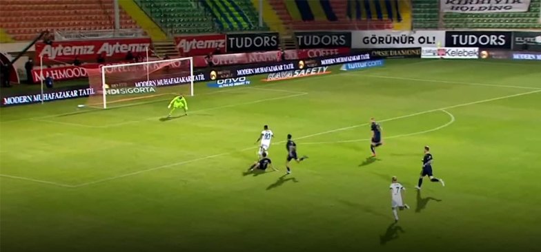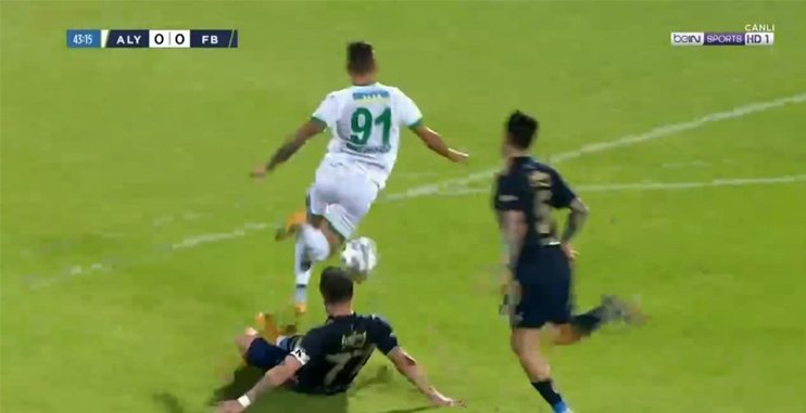 Karşılaşmanın 44. dakikasında Davidson defansın arkasına hareketlendi. Harun ile karşı karşıya kalan yıldız futbolcu Gökhan Gönül'ün müdahalesi ile yerde kaldı.