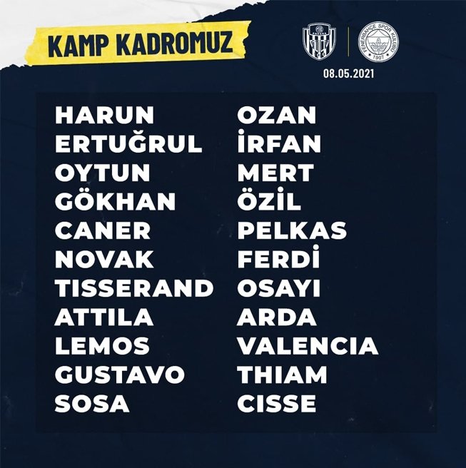 "Harun Tekin, Osman Ertuğrul Çetin, Oytun Özdoğan, Gökhan Gönül, Caner Erkin, Filip Novak, Marcel Tisserand, Attila Szalai, Mauricio Lemos, Luiz Gustavo, Jose Sosa, Ozan Tufan, İrfan Can Kahveci, Mert Hakan Yandaş, Mesut Özil, Dimitris Pelkas, Ferdi Kadıoğlu, Bright Osayi-Samuel, Arda Güler, Enner Valencia, Mame Thiam, Papiss Cisse."