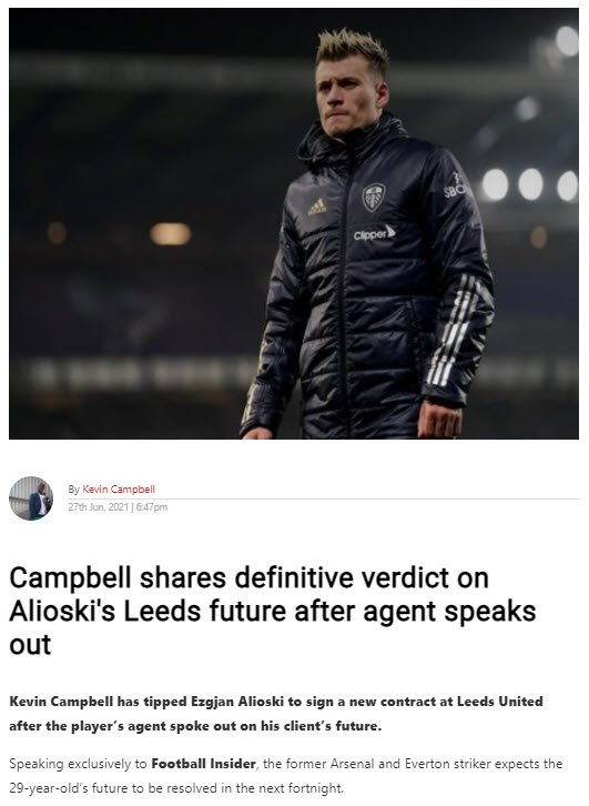 Süper Lig devleri Beşiktaş, Fenerbahçe ve Galatasaray'ın transfer hedefleri arasında yer alan Arnavut futbolcu Ezgjan Alioski hakkında İngiliz eski golcü Kevin Campbell konuştu.