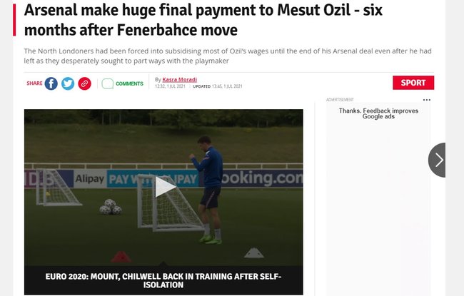 Dailystar'da yer alan habere göre Fenerbahçeli yıldızın alacağı son 6 aylık maaşını karşılayacağı bilinen Arsenal'in, Mesut'a dev miktardaki alacağını yatırdığı ve Mesut ile Arsenal'in ilişiğinin resmen kesildiği kaydedildi.