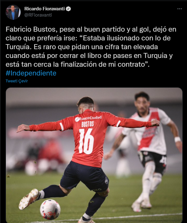 Süper Lig'de sezona oldukça iyi bir başlangıç yapan Fenerbahçe'de transfer çalışmaları devam ediyor. Sarı lacivertliler milli arada Diego Rossi, Berisha, Max Meyer ve Miguel Crespo'yu kadrosuna katmıştı. Takıma son olarak bir sağ ve sol bek takviyesi yapmak isteyen Kanarya'nın gündeminde, Independiente forması giyen Fabricio Bustos vardı.