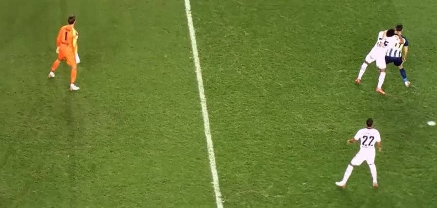 Sağ taratan yapılan ortaya Berisha, Lucas Melo'nun müdahalesi ile yerde kaldı. Maçın hakemi Srdjan Jovanovic bu pozisyonda oyunu devam ettirdi.