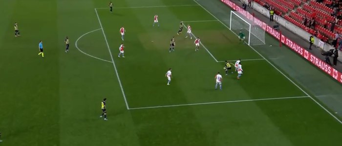 Topla ceza sahasına giren Arda, Slavia Prag'lı iki rakibini karşısına alddı, çalım atıp arlarından geçti ve şutunu çekti. Kaleciden dönen ve önüne gelen topu Berisha sert bir şutla ağlara yolladı.