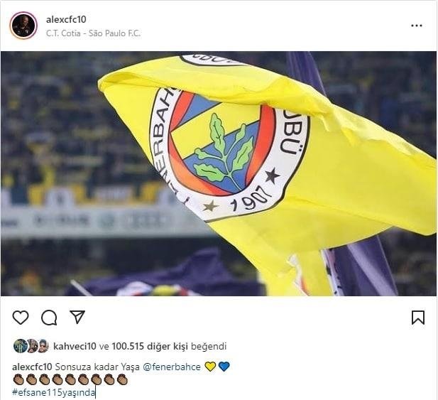 Şu sıralar Brezilya ekiplerinden Sao Paulo'nın B takımını çalıştıran Alex, Instagram hesabından yaptığı paylaşımda, "Sonsuza kadar yaşa Fenerbahçe." ifadelerini kullandı.