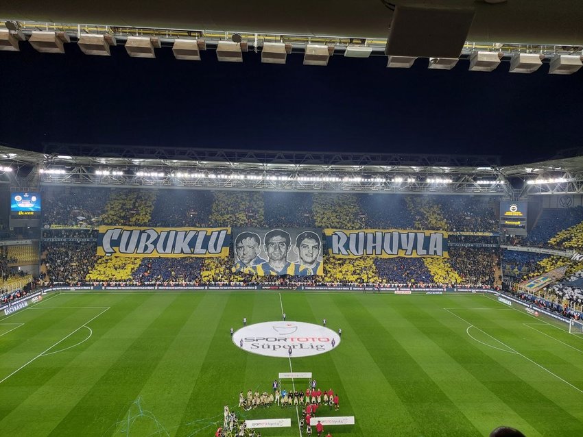Maraton tribününde, efsane futbolculardan Lefter Küçükandonyadis, Can Bartu ve Basri Dirimlili'nin görsellerinin her iki yanında sarı-lacivert pankart üzerine "Çubuklu Ruhuyla" yazarken, kale arkası tribünlerde de, "Çubukluyla Yapılanlar Sonsuzlukta Yankılanır" ve "İki Kıta, Yedi Tepe; En Büyük Fenerbahçe" yazıları yer aldı.