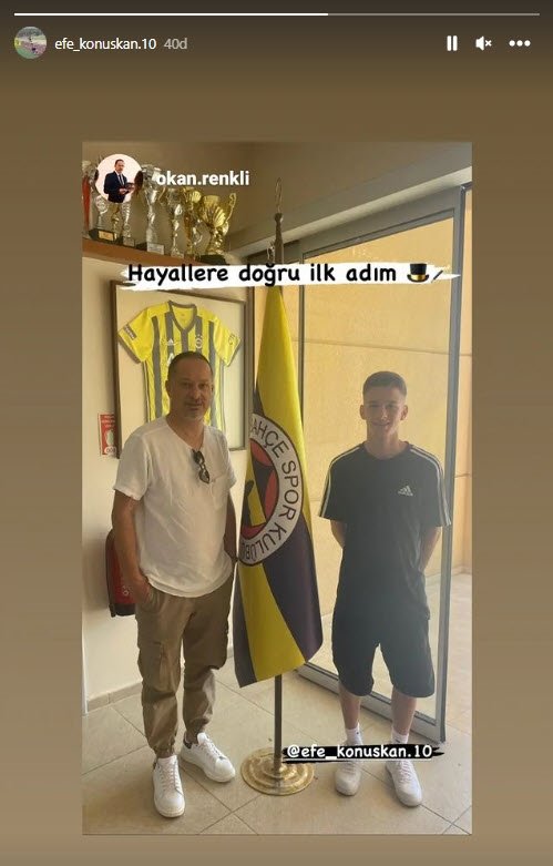Fenerbahçe Tesisleri'nden paylaşımda bulunan Efe Konuşkan, 'Hayallere doğru ilk adım' notunu düştü.