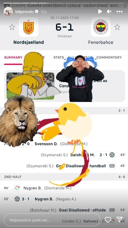 Fenerbahçe, UEFA Konferans Ligi'nde deplasmanda karşılaştığı Danimarka ekibi Nordsjaelland'a 6-1 yenildi. Galatasaray'ın eski futbolcusu Felipe Melo'dan maç sonu paylaşım geldi.