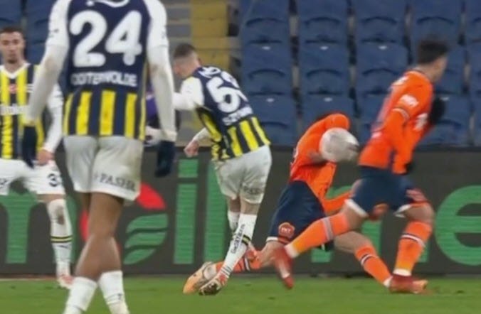 Sarı-lacivertliler 90+2. dakikada Szymanski'nin ceza sahası dışından çektiği şutta Başakşehir'den Onur Ergün'ün eline çarpması sonucu penaltı kazandı.