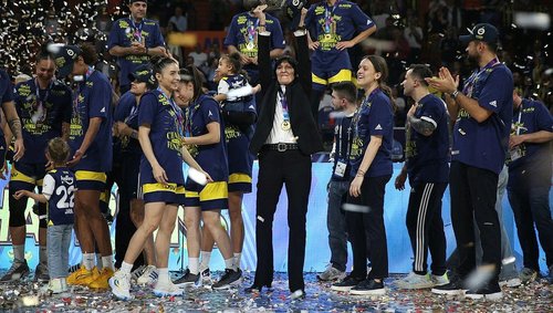 Üst üste ikinci kez Avrupa'nın en iyi takımı olmayı başaran Fenerbahçe'de koç Valeri Garnier de kupayla böyle sevindi.