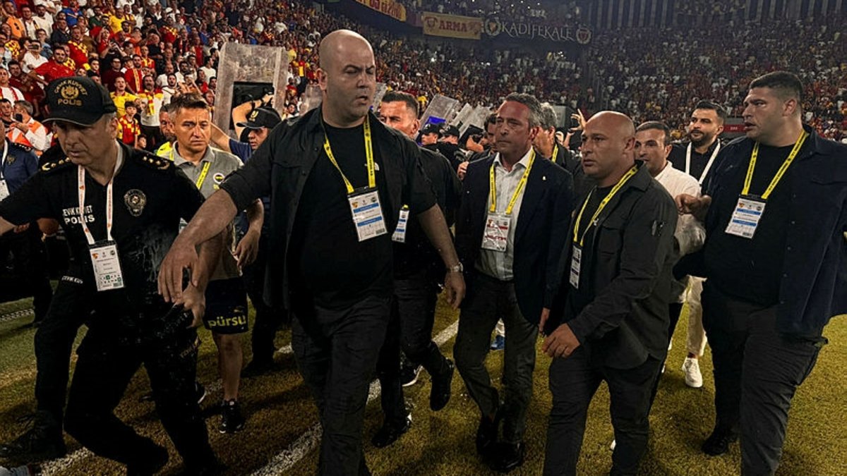 Ali Koç'un taraftarlarla görüşme yaptığı anlarda Göztepe tribünlerinden Ali Koç'a bazı yabancı maddeler atıldı.