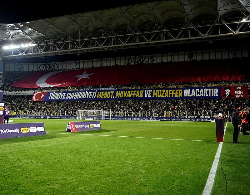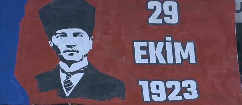 Sarı lacivertli taraftarlar ayrıca, salı günü kutlayacağımız Cumhuriyet Bayramı'na özel Atatürk görselleri ve Türk bayraklarıyla şov yaptı.