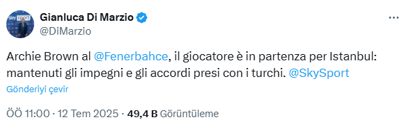 Öte yandan İtalyan gazeteci Fabrizio Romano'nun paylaştığı habere göre; Archie Brown, İstanbul'a geldi.