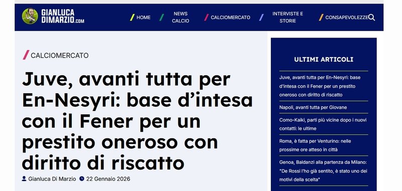 Juventus Futbol Direktörü Giorgio Chiellini'nin Dusan Vlahovic'in yokluğunu dolduracak bir golcü almayı planladıklarını belirttiğini hatırlatan Di Marzio, seçenekler arasında bulunan En Nesyri için Juve'nin vites yükselttiğini belirtti.