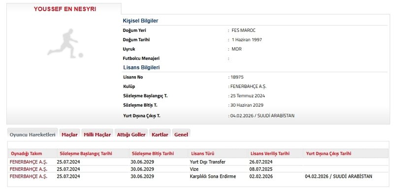 Fenerbahçe En-Nesyri ile karşılıklı anlaşma yoluyla sözleşmesinin feshedildiğini TFF'ye bildirdi.