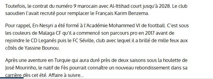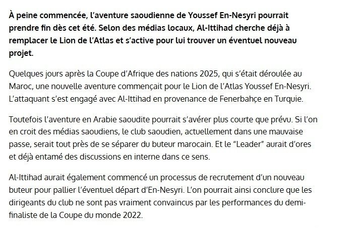 H24'te yer alan habere göre Al-Ittihad, Faslı golcünün yerine şimdiden alternatif arayışına girdi ve oyuncuya yeni bir takım bulmak için harekete geçti.