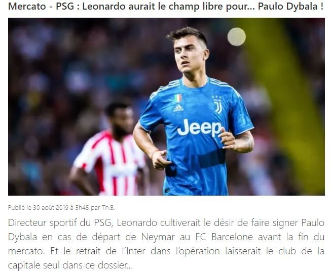 PSG'nin Neymar'ın gitmesi durumunda Paulo Dybala'yı getirmek için harekete geçtiği ifade edildi. Inter'in de bir dönem istediği Arjantinli yıldızdan, Alexis Sanchez transferi nedeniyle vazgeçtiği bildirildi.