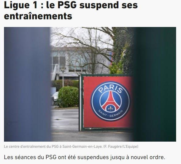 L'equipe'in haberine göre Paris Saint Germain, bir sonraki emre kadar antrenmanlarını durdurma kararı aldı. Haberin detaylarında yer verilen bilgilere göre kulüp, oyuncularına evde kalması için mesaj gönderdi.