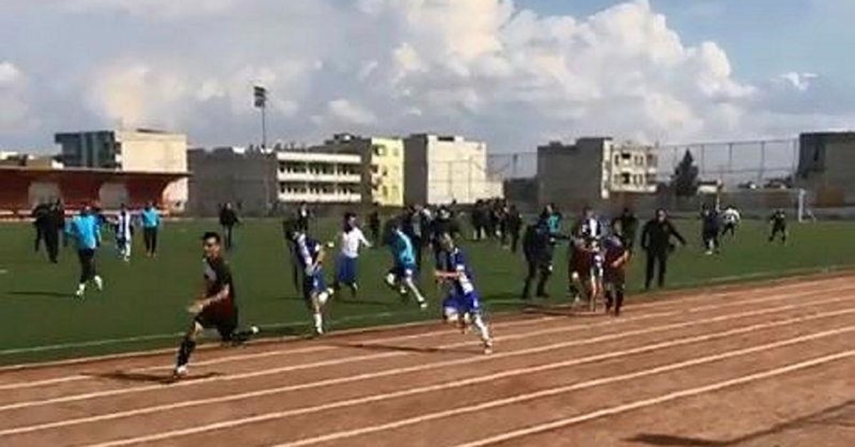 Şanlıurfa Yenice Standı'ndan Haliliye Belediyesi 2. Amatör Küme B Grubu'nda şampiyonluk mücadelesi veren Bağmancıspor ile Eyyübiye Belediyespor karşılaşması olaylı bitti. Hakem Ali Cengiz'in yönettiği müsabakada futbolcular birbirine girdi. Eyyübiye Belediyespor'un 2-0 önde götürdüğü müsabakanın 45. dakikasında her iki takımdan birer oyuncu kırmızı kart görerek oyun dışı kaldı. Kırmızı kart gören futbolcular sahayı terk ettiği sırada birbirlerine tekme tokat saldırdı. Bir futbolcunun korner direğini alıp rakip takımın oyuncusunun kafasına vurması sonrası ise saha karıştı. Olaya diğer oyuncular da karışında ortalık adeta savaş alanına döndü. Sahaya giren polisler, tarafları ayırmak için büyük çaba harcadı. 2 oyuncunun hastaneye kaldırıldığı olayda Bağmancıspor'dan 3 futbolcu, Eyyübiye Belediyespor'dan ise 6 oyuncu ve kırmızı kart gördü. Eyyübiye Belediyespor'un 7 kişinin altına düşmesi nedeniyle maç tatil edildi. Yeşil sahada yaşanan kavga ise cep telefonlarıyla görüntülendi.