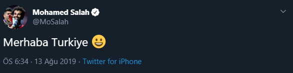 Liverpool ile Chelsea arasında yarın Vodafone Park'ta oynanacak UEFA Süper Kupa mücadelesi öncesinde İstanbul'a ayak basan Liverpool'da yıldız oyuncu Mohamed Salah, sosyal medya hesabından Türkçe bir paylaşım yaptı.