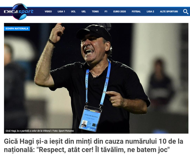 Romanya milli takımında 10 numara formaya artık saygı duyulmadığını belirten Hagi, "Günün birinde tekrar büyük seviyelere geleceğiz ve tekrar gerçek bir 10 numaramız olacak. 10 numarayı rastgele birine veremezsiniz. Son zamanlarda bunu görüyorum ve çok üzülüyorum. 10 numaraya biraz saygı gösterin! Çünkü bu çok önemli bir rol, maçın kaderini değiştiren bir formadır bu. Her maç 10 numara giyen oyuncu değişiyor. Böyle olmaz..." sözlerini kullandı.