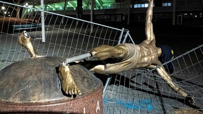 İsveçli yıldız Zlatan İbrahimovic, Hammarby'nin hisselerini satın almıştı. Bunun üzerine eski takımı Malmö'nün taraftarları defalarca İbrahimovic'in heykeline saldırırken; son protestonun ardından heykel tamamen yıkıldı. Saldırganlar, heykele İsveç Milli Takım forması geçirirken; 'Heykeli buradan taşıyın' notunu bıraktı.