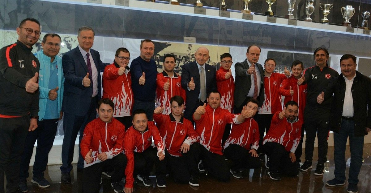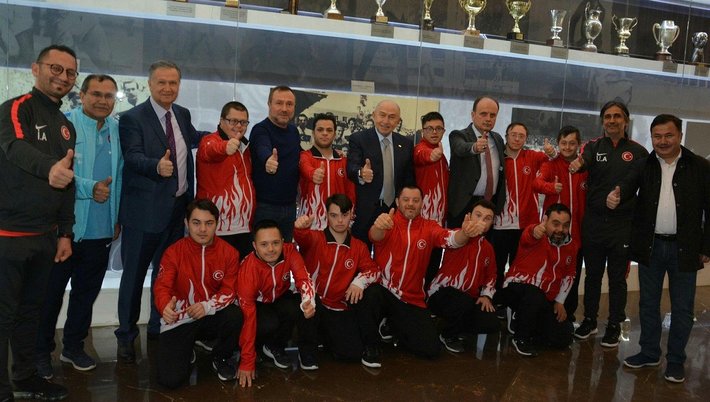 TFF Başkanı Nihat Özdemir, Özel Sporcular Down Sendromlular Milli Takımı'yla bir araya geldi. TFF Başkan Vekili Mehmet Baykan, Özel Sporcular Federasyonu Başkanı Birol Aydın ve Etik Kurulu Başkanı Taci Bayhan'ın da yer aldığı ziyarette hatıra fotoğrafı da çekildi.
