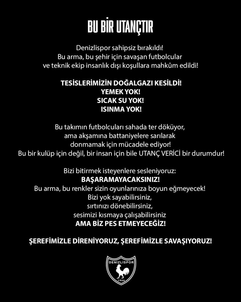 Kulübün yönetimi, yaşanan sıkıntıyı duyurmak ve kamuoyunun dikkatini çekmek adına bir açıklama yaptı. Yönetim, açıklamasında tesislerde yaşanan zorluklara dikkat çekerek, "Tesislerimizin doğalgazı kesildi. Yemek yok, sıcak su yok, ısınma yok" ifadelerine yer verdi. Bu durumun, transfer yasağı bulunan kulüp için daha da zorlayıcı bir hal aldığı belirtilirken, altyapıdan yetişen genç oyuncuların soğuk koşullarda çalışmalarına devam etmek zorunda kaldığı ifade edildi.