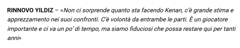 Yeni kontrat için hem kulübün hem de oyuncu tarafının isteği var. Sadece düşündüğünüzden biraz daha fazla zamana ihtiyaç var. Kenan çok özel bir futbolcu. Zaten uzun bir sözleşmesi bulunuyor ve bu takımın uzun yıllar önemli bir parçası olacağına inanıyoruz."