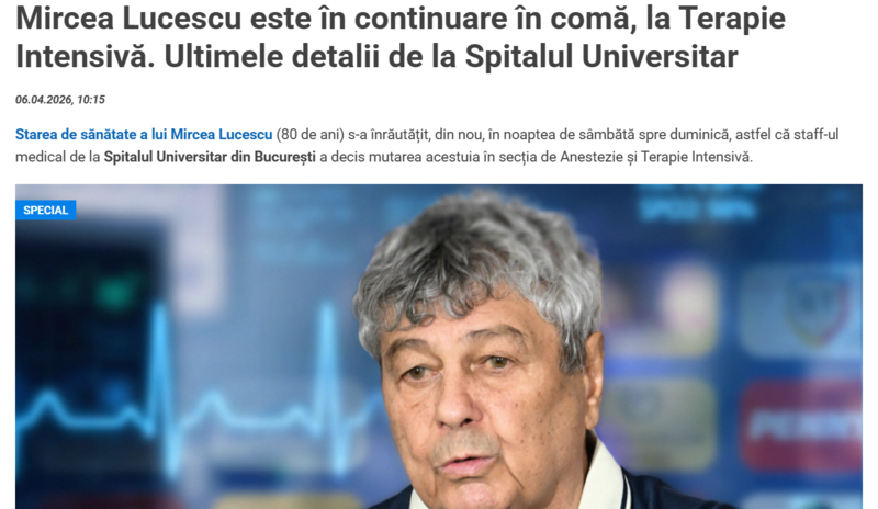 Romanya basınında yer alan haberlere göre Mircea Lucescu'nun hala yoğun bakımda olduğu, bilincinin kapalı bulunduğu ve makineler yardımıyla hayatta tutulduğu ifade edildi.
