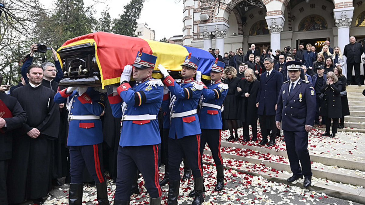 Mircea Lucescu'nun oğlu Razvan Lucescu törende uzun süre tabutun beklerken, taziyeleri kabul etti.