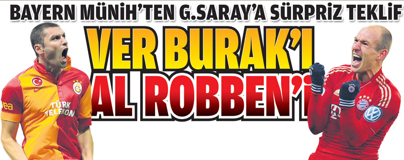 Önümüzdeki transfer döneminde Avrupa'da en çok konuşulacak isimlerden birinin Burak Yılmaz olacağına kesin gözüyle bakılırken, G.Saraylı futbolcuyla ilgili çarpıcı bir iddia daha ortaya atıldı. İtalya'nın calciomercato.com sitesi, sezon sonunda Bayern Münih'in başına geçecek Guardiola'nın Burak Yılmaz'ı çok istediğine dikkat çekti. Haberde Alman kulübünün bu futbolcuya karşılık Galatasaray'a Arjen Robben'i teklif edeceği duyuruldu. Bu haber, Avrupa çapında hemen yayılırken, Galatasaray'ın ise bire bir takasa soğuk baktığı öğrenildi. Sarı-kırmızılıların Robben'in yanı sıra para talebinde de bulunacağı kaydedildi.