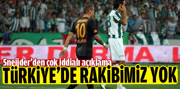 G.Saray'ın yıldız futbolcusu Wesley Sneijder, Türkiye'de şampiyonluk yarışında rakipsiz olduklarını, kendileri için önemli olanın Şampiyonlar Ligi'nde başarı olduğunu söyledi. Ülkesinde Algemeen Dagblad gazetesine konuşan Hollandalı yıldız, "Burada olmak verdiğim en doğru kararlardan birisi. Geçen sezon Şampiyonlar Ligi'nde çeyrek finale kadar yükseldik. Türkiye'de başarı üzerinde çok durmuyoruz çünkü şampiyonluk yarışında rakibimiz olmadığı için zorluk yaşamıyoruz" dedi. Sneijder, milli takım ile ilgili, "Dünya Kupası'nda olmak benim elimdeyse, orada olacağım" dedi.