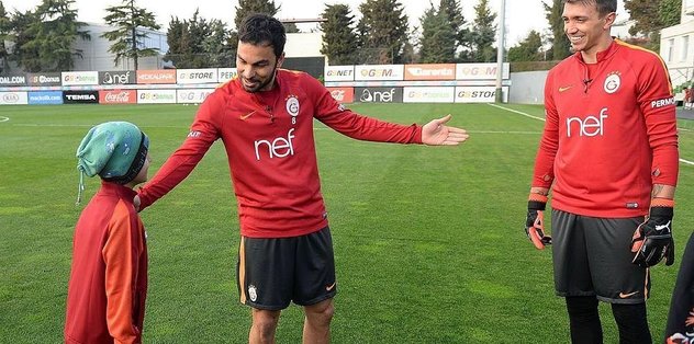 Galatasaray taraftarı 10 yaşındaki rabdomyosarkom (kas ve yumuşak doku tümörü) hastası Kaan Muhammed Eraslan, sarı-kırmızılı futbolcularla bir araya geldi.