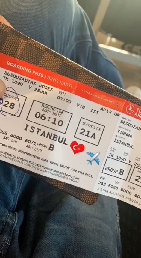 Galatasaray'ın transfer listesinde bulunduğu belirtilen Josef de Souza dikkat çeken bir paylaşım yapmıştı. Sosyal medya hesabından uçak biletinin fotoğrafını yayınlayan Brezilyalı oyuncunun Viyana'dan İstanbul'a geleceği görülmüştü. Saat 10.30 sularında İstanbul havalimanına inen Josef, burada kısa bir açıklama yaptı.