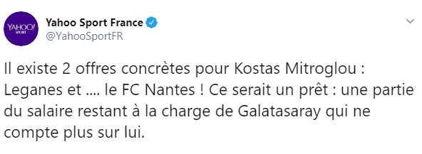 Yahoo Sport France'ın haberine göre Fransız ekibi Nantes ve İspanyol temsilcis Leganes futbolcuyu kiralamak istiyor. Haberde Yunan golcünün kiralanması halinde maaşının bir kısmının da sarı-kırmızılı takım tarafından ödeneceği bilgisi paylaşıldı. Bu detay Galatasaray taraftarlarının büyük tepkisini çekti.