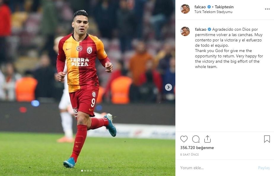 Galatasaray'ın Süper Lig'de Aytemiz Alanyaspor'u 1-0 mağlup ettiği karşılaşmada 78. dakikada oyuna giren Radamel Falcao, uzun süren sakatlığının ardından yeniden yeşil sahalara dönmüştü.