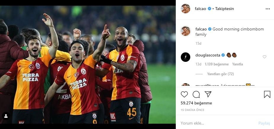 Falcao'nun bu paylaşımını sarı-kırmızılı taraftarlar yorum yağmuruna tuttu.