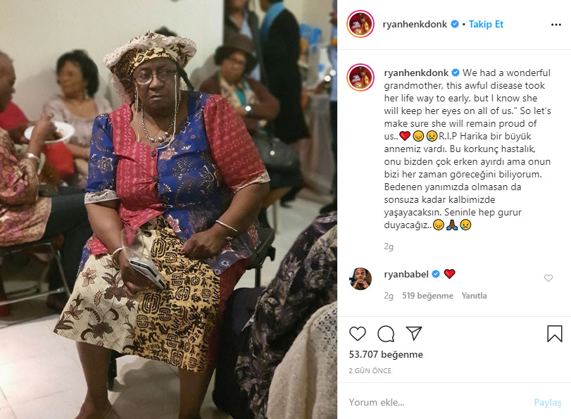 Aslan'ın Hollandalı yıldızı Ryan Donk, büyükannesinin koronavirüs nedeniyle öldüğünü duyurdu. Surinam asıllı yıldız, "Harika bir büyükannemiz vardı. Bu korkunç hastalık, onu bizden çok erken ayırdı ama onun bizi her zaman göreceğini biliyorum. Bedenen yanımızda olmasan da sonsuza dek kalbimizde olacaksın" yazdı.