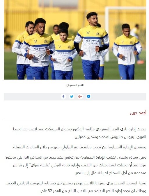 Öte yandan Al Nasr yönetimi, Türk kulübü Galatasaray ile görüşmelerinde sona geldi. Bu transfer görüşmesinin nihai karara bağlanması ve Brezilyalı savunmacı Maicon ile yeni bir sözleşme imzalanması artık çok yakın."