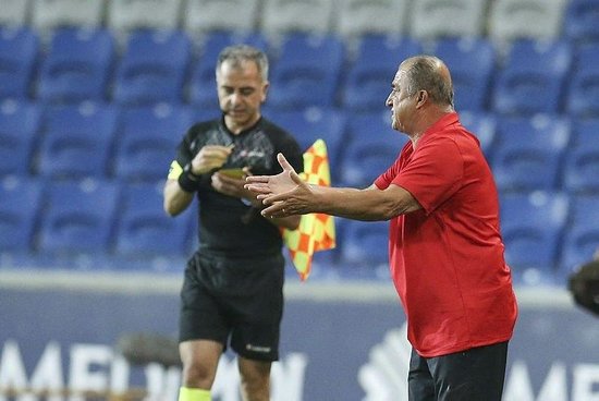 Maçın 8. dakikasında sarı-kırmızılılarda Saracchi sarı kart görürken, pozisyon sonrası sinirlenen teknik direktör Fatih Terim sahaya kadar girerek tepki gösterdi.