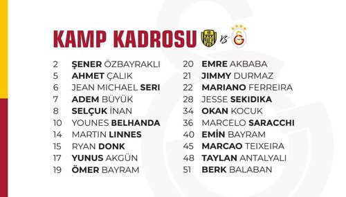 İşte Galatasaray'ın Ankaragücü kamp kadrosu;