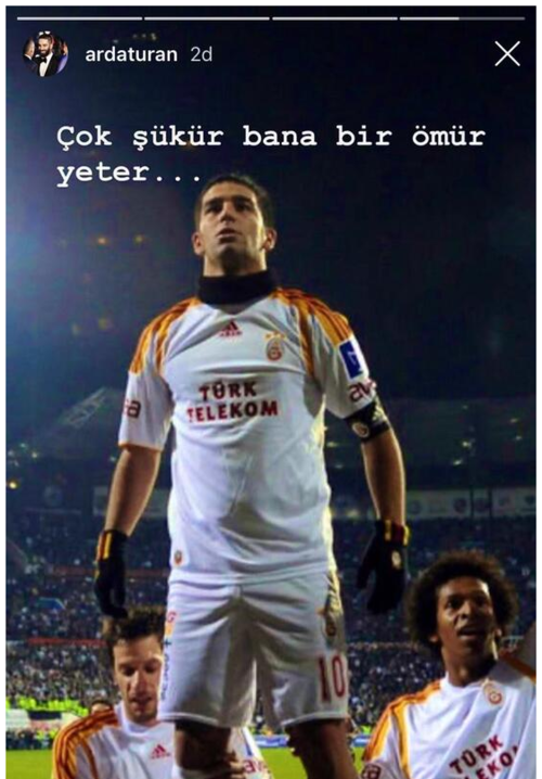 Galatasaray forması ile gol sevinci yaşadığı bir fotoğrafını Instagram'daki hikaye bölümünden paylaşan Arda Turan, "Çok şükür bana bir ömür yeter" ifadelerini kullandı.