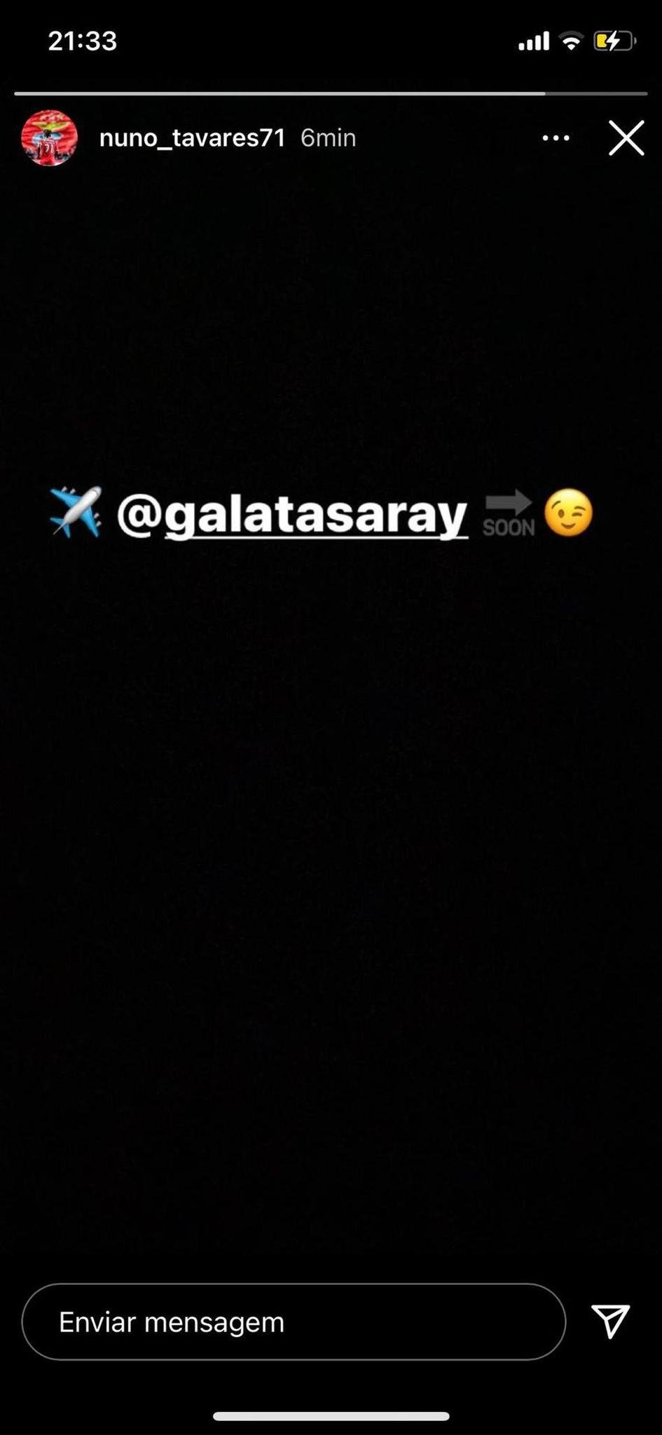 Benfica forması giyen 21 yaşındaki sol bek oyuncusu Nuno Tavares'in, Instagram hikayesinden yaptığı bir paylaşım ülkede gündem oldu. Genç oyuncunun sosyal medya hesabına bakanlar, "Yakında Galatasaray" yazan ve transferi ima eden yazıyı görünce şaşkınlıklarını gizleyemediler.